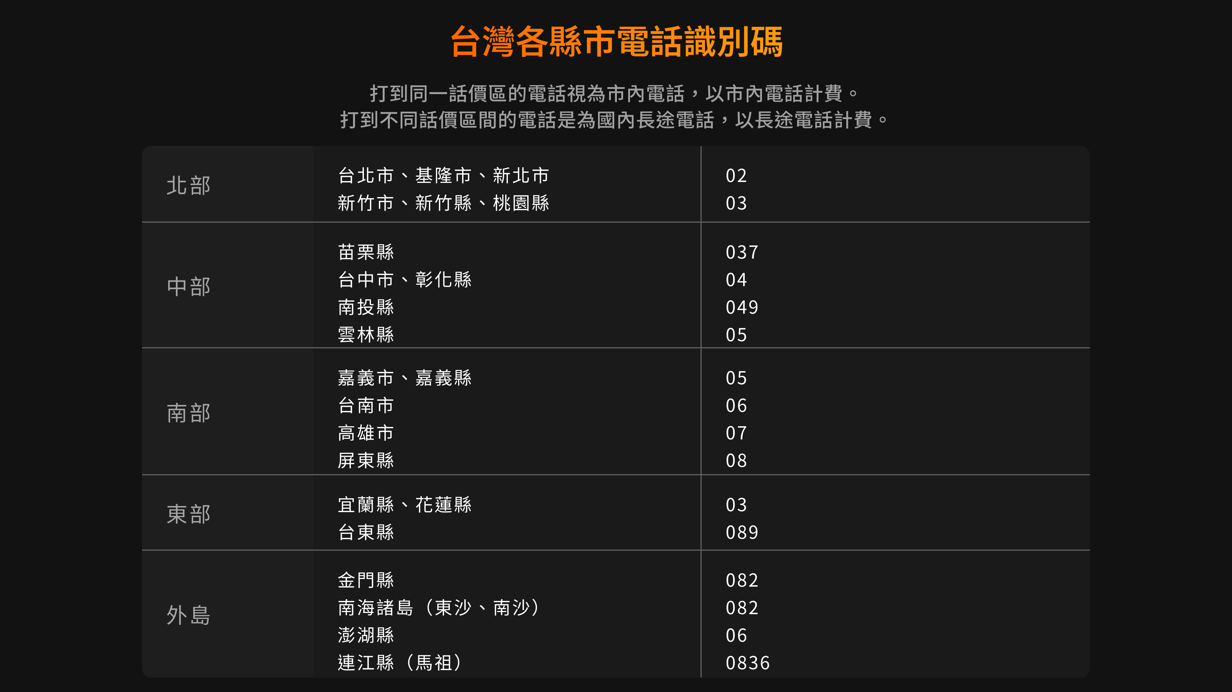 *註 本業務之營業區域依交通部或電信總局公告之市內通信營業區域為準。在該區域內所裝設之用戶終端設備,其相互間之通信均按市內通信費率計費。