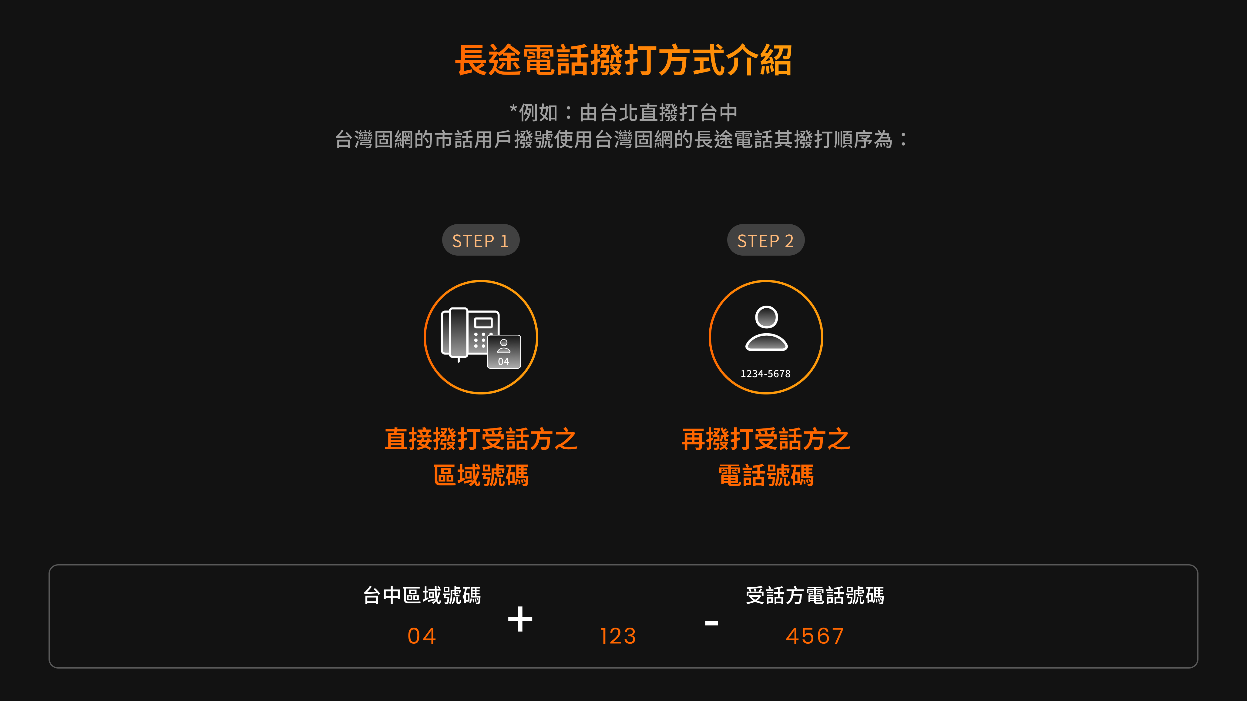 | 長途電話 | 使用本公司長途電話 (註3) |